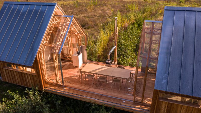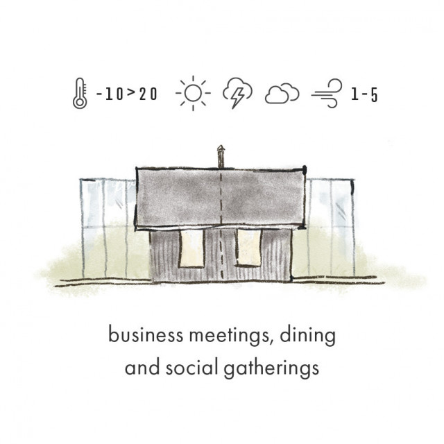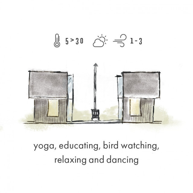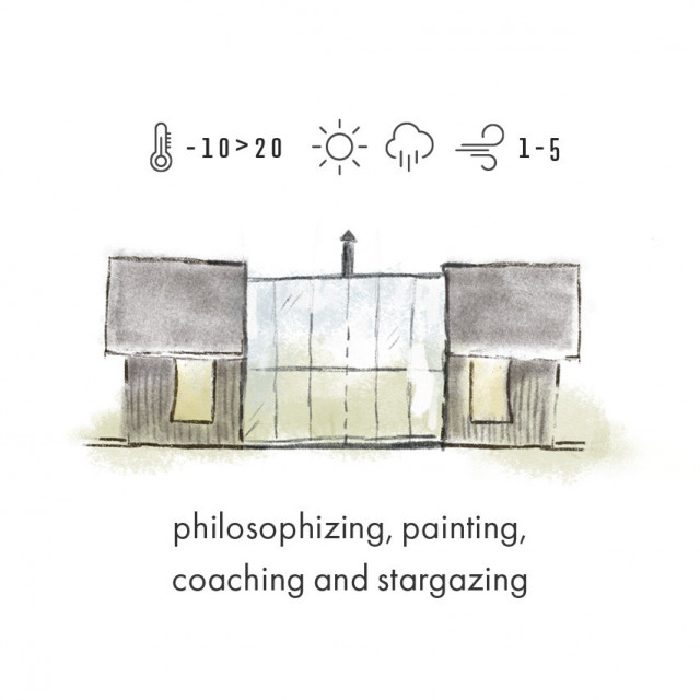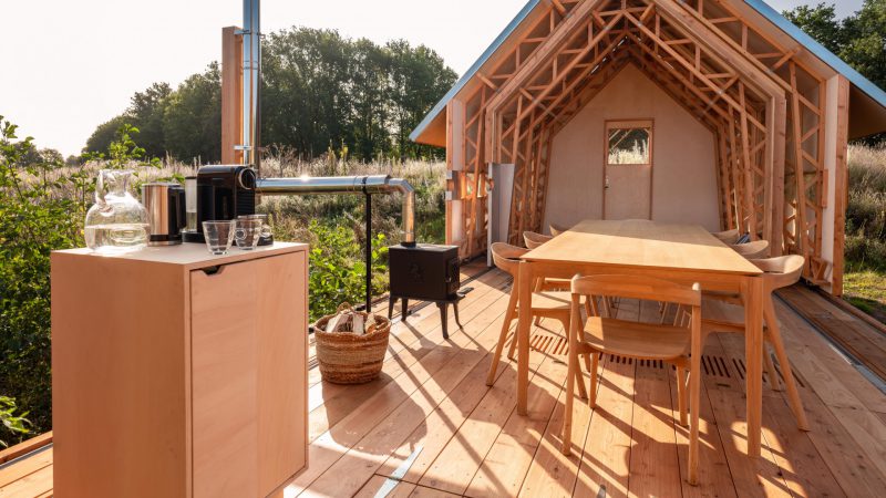 Door met de binnen- en buitenlagen van de cabin te spelen, ben je altijd verbonden met de omgeving. In de dynamiek tussen ANNA Meet en de elementen (het weer, de temperatuur, het leven om je heen) word je zelf een klein beetje onderdeel van de natuur. Schuif met de glazen- en houten schillen en bepaal zelf de sfeer die op dat moment gewenst is. Houd er rekening mee dat meebewegen met de natuur, ook meebewegen met de seizoenen betekent. Waar het in de zomer warm kan worden onder het glas, is het in de winter soms erg koud. Met onze pelletkachel maak je het zelf een stuk aangenamer. Toch kan het best eens voorkomen dat je, wanneer het buiten vriest bijvoorbeeld, een plaid of zelfs een dikke jas nodig hebt.